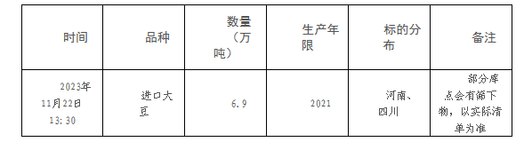 受中储粮油脂有限公司委托,2023年11月22日13:30在国家粮食和物资储备局粮食交易协调中心及联网的各省(区、市)国家粮食交易中心组织开展进口大豆竞价交易,请交易会员通过国家粮食交易中心官网(www.grainmarket.com.cn)“用户中心”,登录国家粮食交易平台,在专场列表中选择“政策性粮食轮换交易”参与交易。现就有关事项公告如下(重点提示内容详见加粗字体部分):